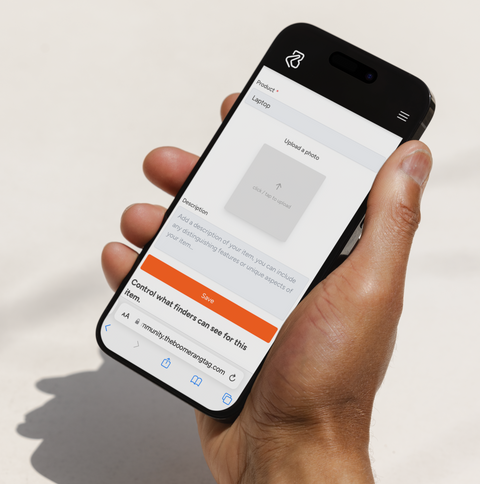 Once you’ve tagged your item, scan the BoomerangTag® with your phone camera (like any QR code) and click to follow the link. Register your belongings & you’re done - you can forget about it unless you need to find it!